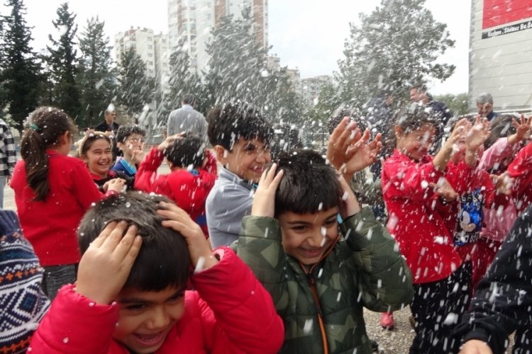 Adana’da kuzey ilçelere kar yağarken, kar yağmayan Kozan’a ise suni kar getirildi.