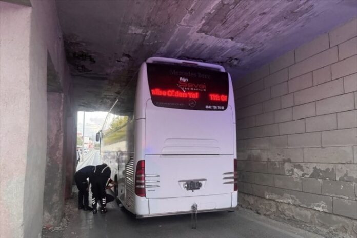 Ağrı 1970 SK takım otobüsü Kayseri’de alt geçitte sıkıştı