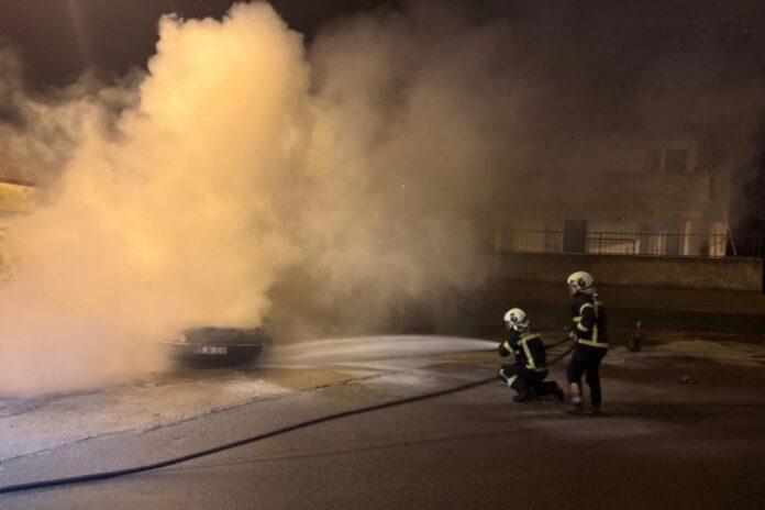 Zonguldak’ın Kozlu ilçesinde park halindeyken alev alan otomobil kullanılamaz hale geldi.