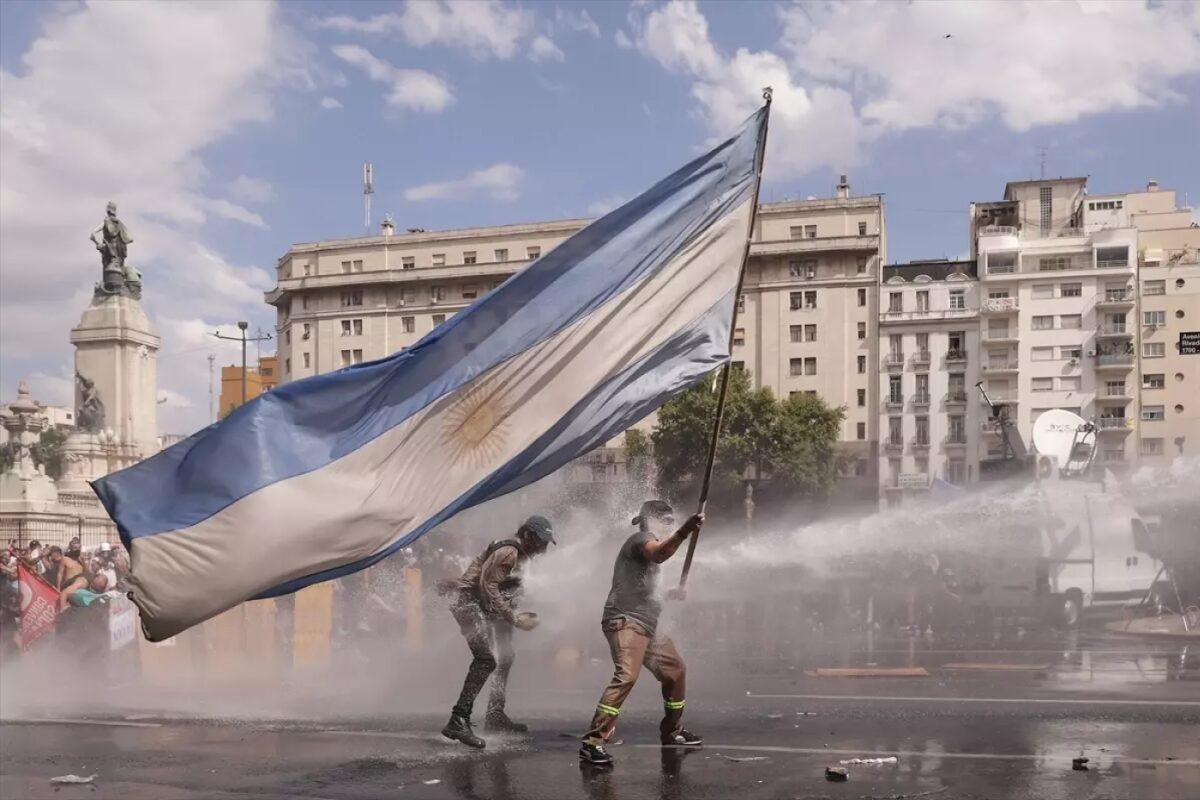 Arjantin’in başkenti Buenos Aires’te, Devlet Başkanı Javier Milei hükümetinin çalışma reformu yasasına karşı düzenlenen protestolar sırasında polis ile göstericiler arasında çatışmalar çıktı. Göstericilerin kongre binasına yürümek istemesi üzerine, güvenlik güçleri gaz ve tazyikli su kullanarak müdahale etti.