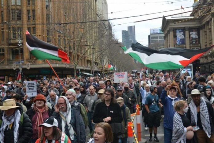ANA SAYFASON DAKİKA Avustralya’da binlerce kişi İsrail’e yaptırım talebiyle sokağa döküldü… Yazar mustafaislam - 7 Eylül 2025 0 24 FacebookTwitterPinterestWhatsApp Avustralya’nın Melbourne kentinde binlerce kişi, Gazze’ye saldırılarını sürdüren İsrail’e yaptırım uygulanması talebiyle gösteri düzenledi.