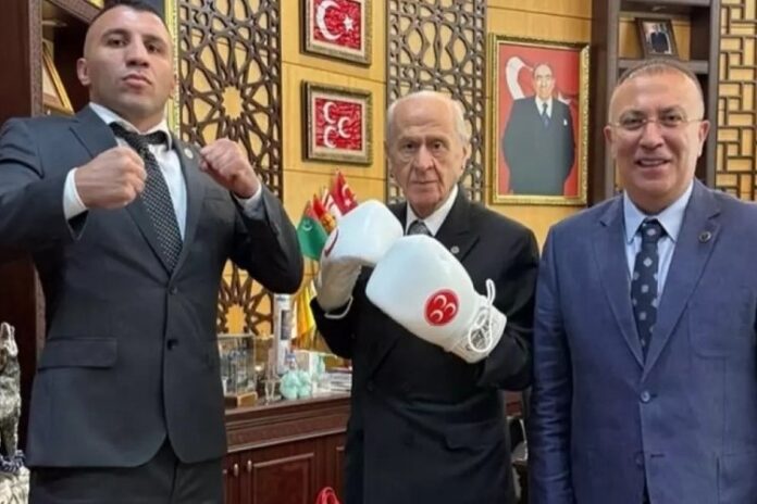 ANA SAYFASON DAKİKA Bahçeli’den boks eldivenli fotoğraf: Sosyal medyada gündem oldu Yazar mustafaislam - 13 Eylül 2025 0 10 FacebookTwitterPinterestWhatsApp MHP Genel Başkanı Devlet Bahçeli, şampiyon boksör Avni Yıldırım’ı makamında ağırladı. Bahçeli, ziyaret sonrası çekilen hatıra fotoğrafında boks eldivenlerini takarak poz verdi.