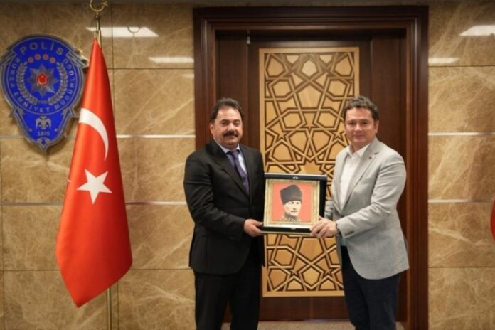 ANA SAYFASON DAKİKA Başkan Aydın’dan yeni İl Emniyet Müdürü Gökçe’ye hayırlı olsun ziyareti Yazar mustafaislam - 23 Eylül 2025 0 10 FacebookTwitterPinterestWhatsApp Osmangazi Belediye Başkanı Erkan Aydın, Bursa İl Emniyet Müdürlüğü görevine başlayan Kadir Gökçe’yi makamında ziyaret ederek, yeni görevinde başarılar diledi.
