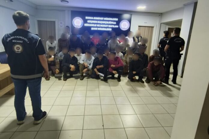 ANA SAYFASON DAKİKA Bursa’da emniyet güçlerinden kaçak işçi operasyonu! Çok sayıda yakalama var… Yazar mustafaislam - 26 Eylül 2025 0 10 FacebookTwitterPinterestWhatsApp Bursa Emniyet Müdürlüğü Göçmen Kaçakçılığıyla Mücadele ve Hudut Kapıları Şube Müdürlüğü tarafından Gemlik-Orhangazi yolu üzerinde bulunan ruhsatsız bir iş yerinde çalışan 33 yabancı uyruklu şahsın yakalandığı açıklandı.