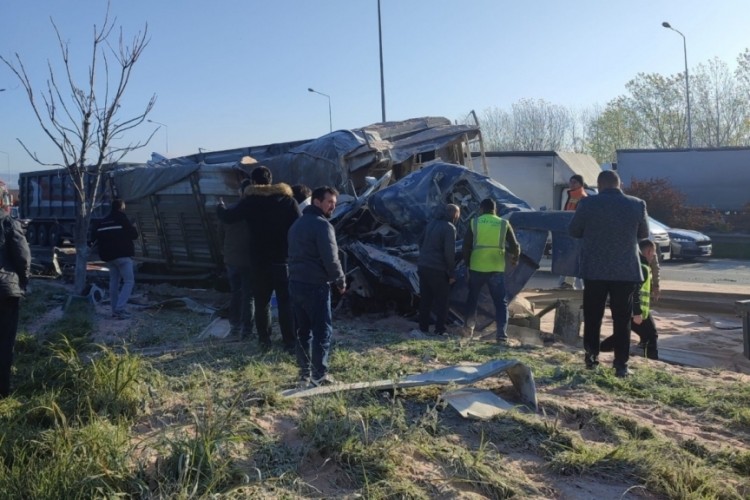 Bursa’da, çevre yolu üzerinde meydana gelen trafik kazasında kontrolden çıkan kamyon dinlenme tesisi önünde bariyerlere girdi. Kazada, hurdaya dönen kamyonun şoförü kabin içinde sıkıştı.