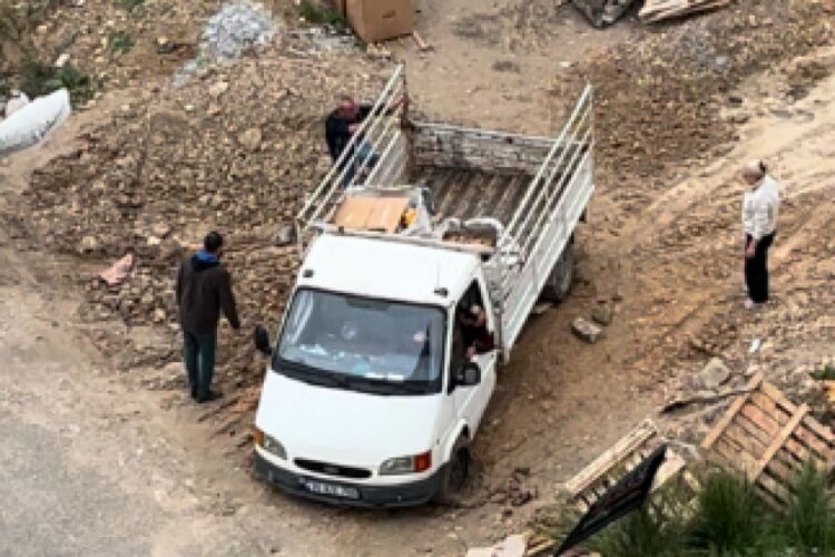 Bursa’da inşaat alanına giren bir kamyonet çamura saplandı. Vatandaşların uzun uğraşlar sonucu çıkarmaya çalıştığı kamyonet, çamurdan çıkamadı.