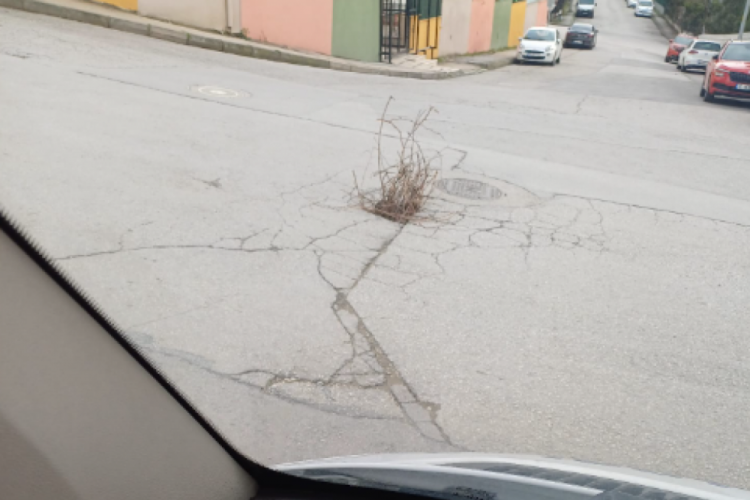 Bursa’da yol çöktü, vatandaşlar çöken yola ilginç bir çözüm buldu.