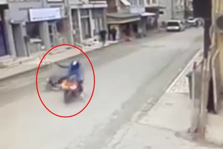 Bursa’da yolun karşısına geçmeye çalışırken motosikletin çarptığı E.İ. yaralandı. Motosiklet sürücüsü M.E.İ. kaçarken, kaza çevredeki bir iş yerinin güvenlik kamerasına yansıdı.