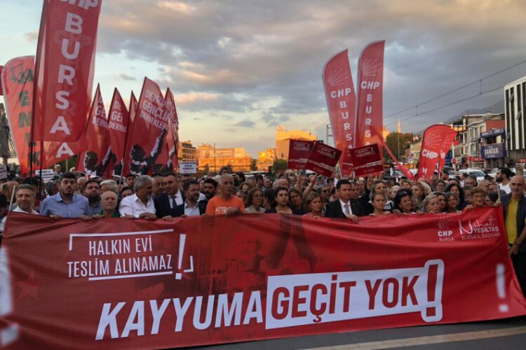 ANA SAYFASON DAKİKA CHP Bursa İl Başkanlığı örgütü, “Kayyuma geçit vermeyeceğiz” Yazar mustafaislam - 8 Eylül 2025 0 8 FacebookTwitterPinterestWhatsApp Cumhuriyet Halk Partisi’nde (CHP) İstanbul İl Başkanlığı’na Gürsel Tekin başkanlığında kayyum kurulu atanmasının ardından, CHP Bursa İl Başkanlığı örgütü Bursa Kent Meydanı’nda bir basın açıklaması yaptı.