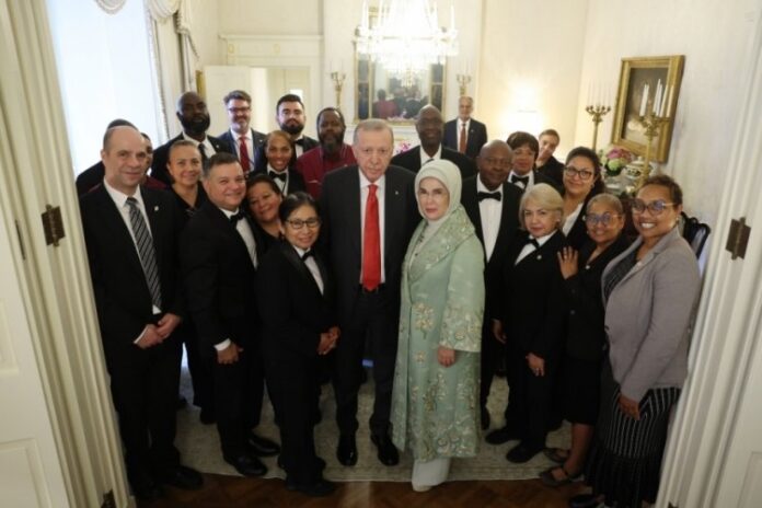 ANA SAYFASON DAKİKA Cumhurbaşkanı Erdoğan, Blair House çalışanlarıyla hatıra fotoğrafı çektirdi Yazar mustafaislam - 26 Eylül 2025 0 14 FacebookTwitterPinterestWhatsApp Cumhurbaşkanı Recep Tayyip Erdoğan ile eşi Emine Erdoğan, Washington’da konakladığı Blair House’da çalışanlar ile hatıra fotoğrafı çektirdi.