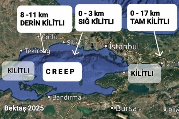 Marmara’da beklenen büyük depreme ilişkin paylaşımda bulunan Prof. Dr. Osman Bektaş, ‘bölgedeki fayların büyük deprem üretme kapasitesinin abartıldığını’ söyledi. “Kilitli demekle 7.6’lık deprem üretemezsiniz” diyen Bektaş, kilitlenme derinliği ve derecesine dikkat çekerek muhtemel depremin büyüklüğünün 7’nin altında kalabileceğini savundu.
