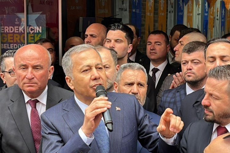 İçişleri Bakanı Ali Yerlikaya Balıkesir’in Erdek ilçesinde AK Parti Erdek Belediye Başkan Adayı Turhan Gün’ün seçim ofisi açılışına katıldı. Yerlikaya “Türkiye’nin huzuru için varız.” dedi.