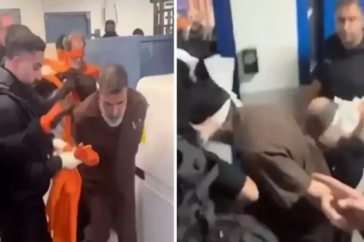 İsrail’in Necef Cezaevi’nde, esir takası kapsamında salıverilmesi beklenen Filistinli esirlere yönelik kötü muamelesini gösteren bir video sosyal medyada dolaşıma girdi. Görüntülerde, elleri arkadan kelepçelenmiş, gözleri bağlı ve başları öne eğilmiş şekilde sıraya dizilen bir grup Filistinli esirin, İsrail askeri ve polisi eşliğinde yürümeye zorlandığı görülüyor.