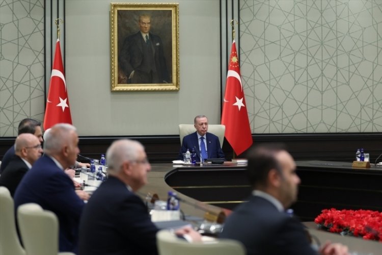 Cumhurbaşkanı Recep Tayyip Erdoğan başkanlığındaki kabine toplantısı sona erdi. 3 saat süren toplantının öncelikli gündem maddeleri arasında Suriye’deki gelişmeler vardı. Cumhurbaşkanı Erdoğan alınan kararları açıklıyor…