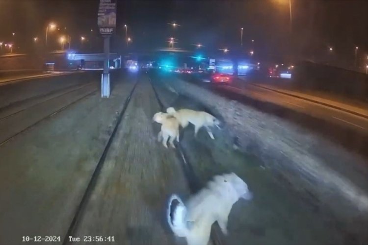 Kayseri’de, Büyükşehir Belediyesi Ulaşım AŞ’de çalışan vatman raylara bağlanan köpeği kurtardı.