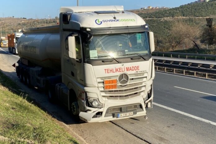 Kocaeli’nin İzmit ilçesinde kimyasal madde yüklü tanker ile otomobil çarpıştı. Kazada yaralanan olmazken, kimyasal maddenin sızmaması faciayı önledi.