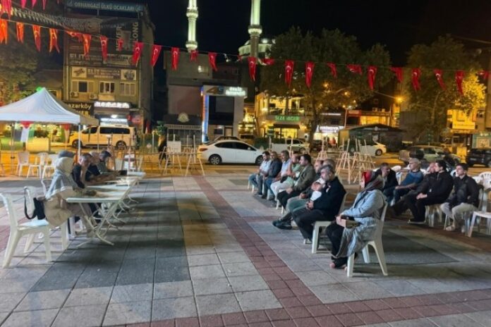 Bursa’nın Orhangazi ilçesinde geçtiğimiz gün “Anadolu’dan Gazze’ye: Bir Nefes” platformu öncülüğünde, ilçede faaliyet gösteren STK ve kuruluşların bir araya gelmesi ile kararı alınan Cumhuriyet alanında ki kara nöbeti başladı. Nöbete katılanlara Gazze’de yaşanan insanlık dramı ve anlık bilgiler anlatılırken, Gazze’ye gitmek üzere yola çıkan Global Sumud Filosu’na canlı bağlantılar yapılıyor.