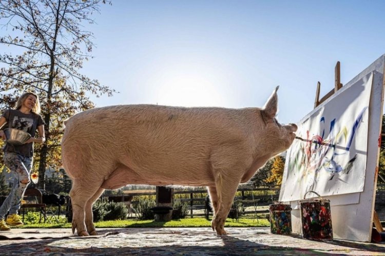 Resim yapan domuz olarak sosyal medyada ünlenen ‘Pigcasso’, 8 yaşında hayatını kaybetti.