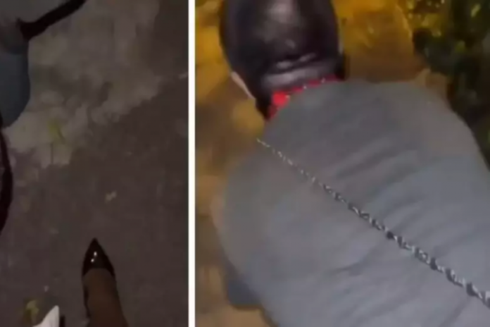Viral oldu! Bir kadın, erkeğe tasma takıp gezdirdi