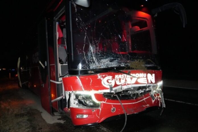 ANA SAYFASON DAKİKA Yola çıkan hayvanlara otobüs ve cip çarptı: 3 inek telef oldu Yazar mustafaislam - 6 Eylül 2025 0 18 FacebookTwitterPinterestWhatsApp Kastamonu-Sinop karayolu üzerinde yola çıkan büyükbaş hayvanlara yolcu otobüsü ile cip çarptı. Kazada 3 büyükbaş hayvan telef oldu.